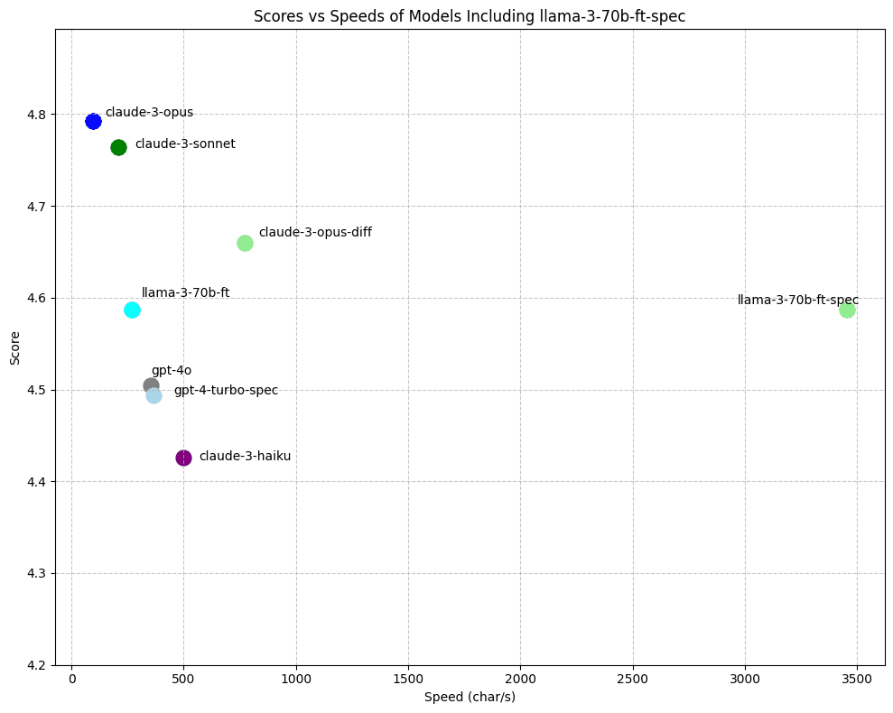 This makes the gain from speculative edits larger for Llama-3 than GPT-4, meaning a 4-5x speedup over the next fastest model.