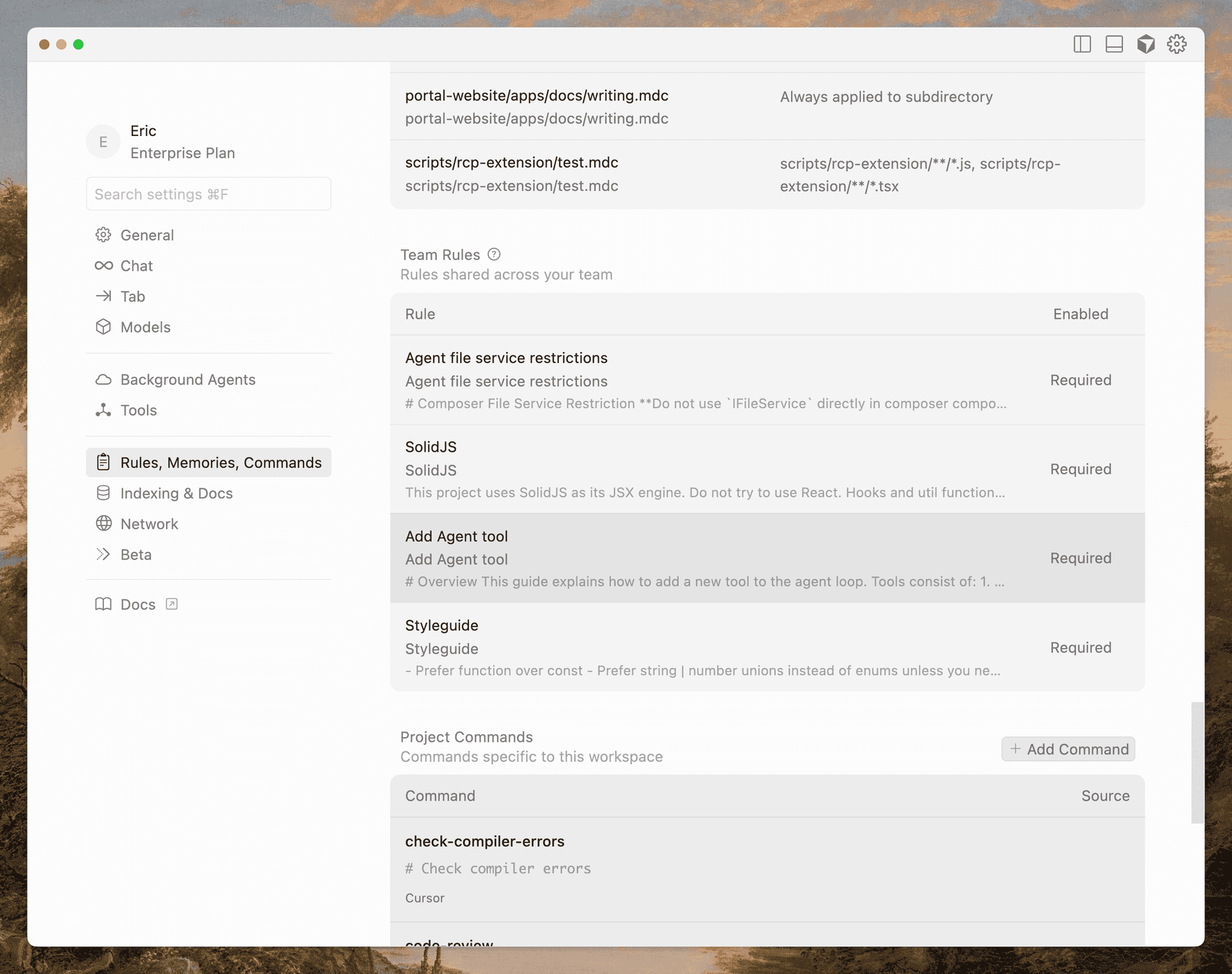 Teams can now define and share global rules from the dashboard that will be applied to all projects. We've also shipped team rules for Bugbot, so behavior is consistent across repos.